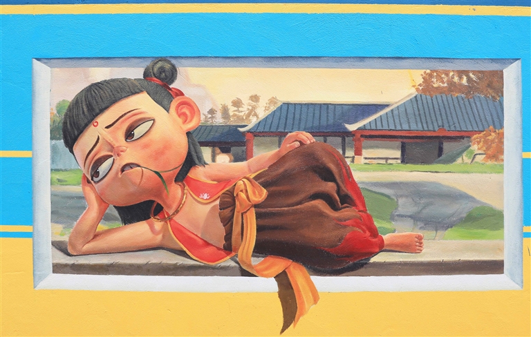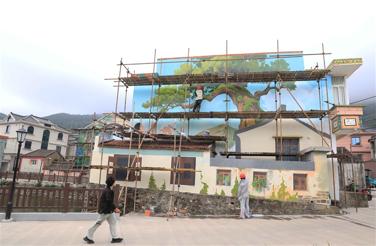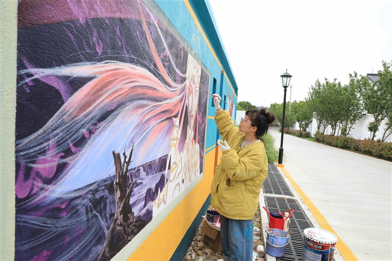 近日,普陀区展茅街道黄杨尖村,一幅幅大型墙绘在多名美术师的精心创作下靓丽呈现。据了解,此次打造的墙绘面积共1300余平方米,主题包括《梦回庙后》、《动漫火车》、《橘猫》等,结合儿时记忆、童趣等方面素材,与周围环境融为一体,进一步提升美丽乡村“颜值”。预计项目在本月底完工。