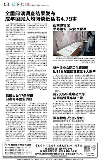 全国阅读调查结果发布成年国民人均阅读纸质书4.79本