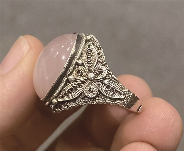最出乎我师父意料,也令他惊叹的是,我以一只镶嵌戒指为范本,精工细作,潜心仿制,通过自学摸索编丝缠丝累丝等传统技艺手法,辅以粉末焊料渗透焊接工艺,完美复制,等比还原,打造出了一只白银镶翠戒,纤毫毕现,其游丝直径最细只有二十六丝,接近毛发,步骤复杂,工艺考究,观之玲珑剔透,巧夺天工!从业五十余年的老师赞不绝口,叹为观止,并带他儿子前来品鉴欣赏。师父由衷赞叹,两个月的学徒工能打造出这么一只堪称艺术品的精美首饰,这真是从事首饰制作的绝佳人选!