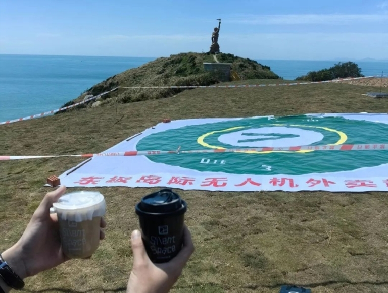 当天上午10点40分,一名顾客在东极庙子湖财伯公像无人机起降点通过扫描现场二维码下单了2杯咖啡饮品。商家后台接单后制作咖啡并送到印象东极民宿无人机临时起降点,10点50分左右无人机起飞,约1分钟后无人机到达财伯公像起降点,通过索降方式将咖啡送到顾客手中,高效快捷的配送服务受到了顾客大力赞赏。