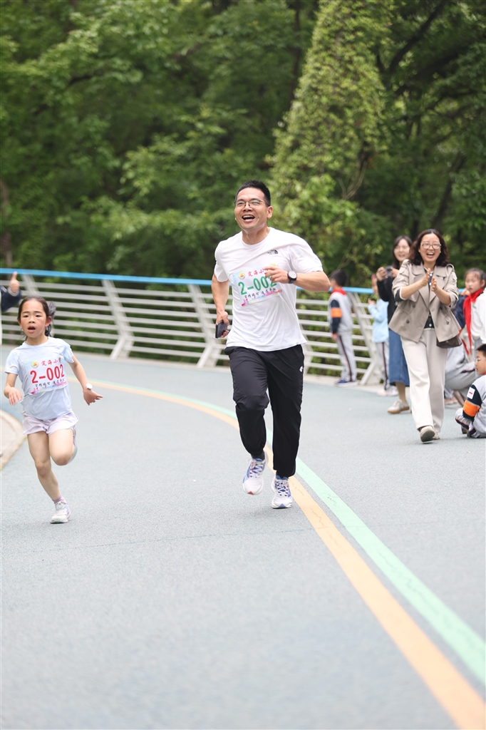 那个女孩也不甘示弱,马上又加快速度反超上来。我着急得不行,小脸涨得通红。爸爸迅速跑到我身边,大声喊:“加油,宝贝,咱们一起冲!”我咬紧牙关,感觉身体里充满了力量,和爸爸一起猛地往前冲,一步、两步……终于又超过了她!