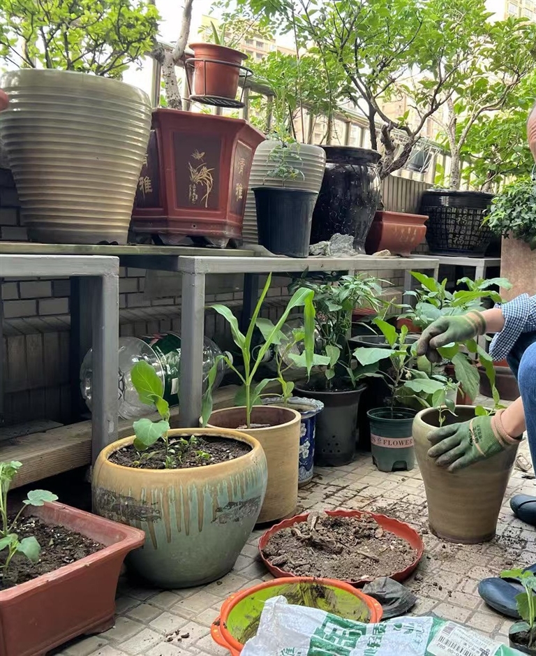 陆爷爷在阳台种菜