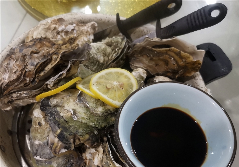 要吃小龙虾,也要配点其他菜式,他家的川湘菜口味一如既往,酸菜鱼、泡椒牛蛙,都是辣意点睛的唇齿美味,来自乳山的生蚝几乎是每一桌的必点项,高压锅精准把控时间,肥大的蚝肉嫩而多汁。