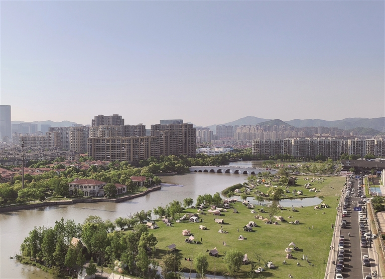 茶山浦一带,因为今年以来“海洲天地”水街市面的形成,居住氛围比较成熟,现在已成为宜居之地。每逢节假日,茶山浦边上的城市绿地,成为了市民露营的好去处。
