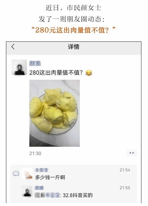 随着热带水果成熟期的到来,“水果之王”榴莲也迎来了消费季。不过,有不少网友吐槽“58.8元一斤还是带壳的”“今年的榴莲怎么这么贵”。市民颜女士还发了一则朋友圈动态:“280元这出肉量值不值?”(据“竞舟新闻”5月11日报道)。不过,吐槽归吐槽,吃的人依然大有所在。而对于多数人来说,榴莲“不自由”真的无所谓。