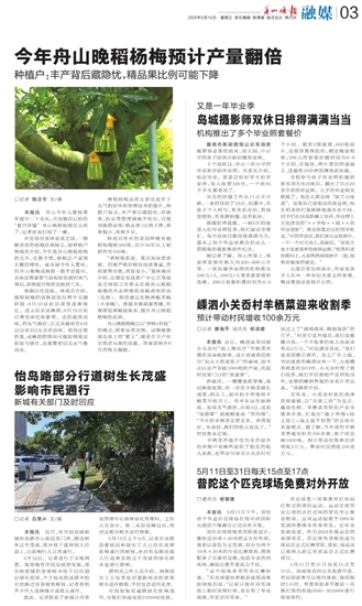今年舟山晚稻杨梅预计产量翻倍