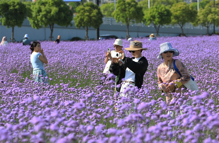 日前,新城港岛大桥东侧,35000平方米马鞭草竞相盛放,形成芬芳绚烂的紫色花海,吸引了众多市民和游人前来赏花游玩。近年来,当地有关部门稳步推进“中国海上花园城市样板区”建设,打造“城市花海”景观,改善了生态环境,市民休闲又多了好去处。记者 陈永建 摄