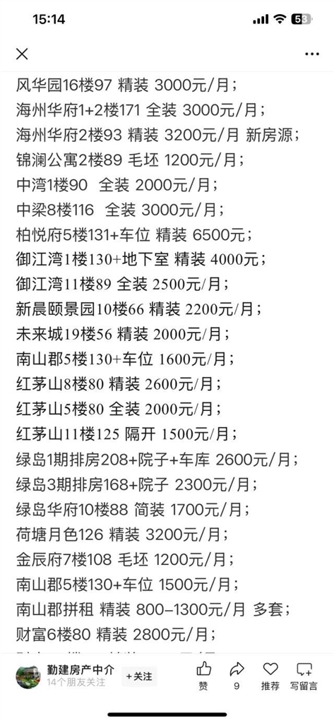 据毛女士介绍,长峙岛杨柳郡的100平方米精装修房源,目前月租金在3000元,而香颂湾的80平方米精装修房源,月租金也在2000元至2300元这样的水平。“租房者看中开发商提供的成品装修房源,水电管路相对安全可靠,设施布置能适应普遍要求。而个人自装的房源,装修多显得个性化,不一定中意。相对而言,成交不如开发商成品装修的顺畅。”