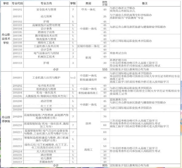 舟山职业技术学校 舟山技师学院 2025年招生计划