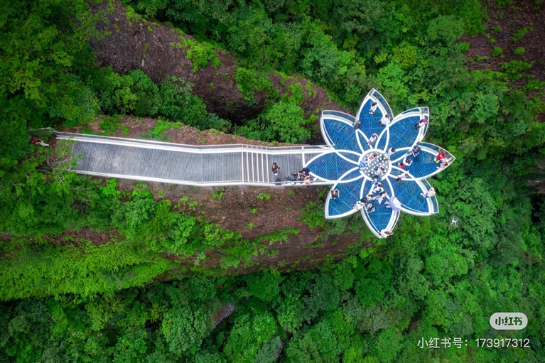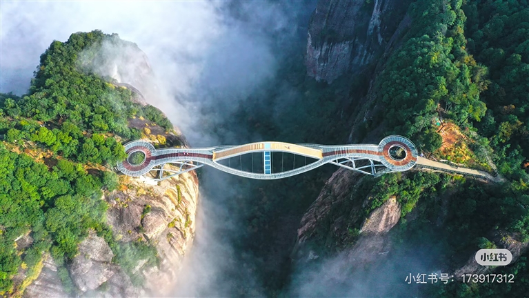 如意桥:三条交错的波浪形桥面,搭配全透明玻璃材质,行走其上,脚下是140多米的垂直深谷,云雾在山间翻涌,仿佛随时会有御剑飞行的仙人掠过身旁。随手一拍,就是火爆朋友圈的氛围感大片!