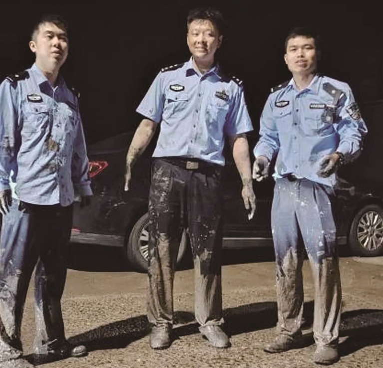 半小时后,大伙终于将孙大妈从淤泥里挖了出来,紧急送上救护车。三位民警回过神后,才发现自己“狼狈不堪”。