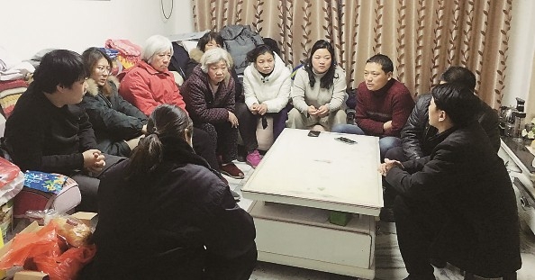纪录片《家庭会议》中“五姨”的家庭成员正在开会