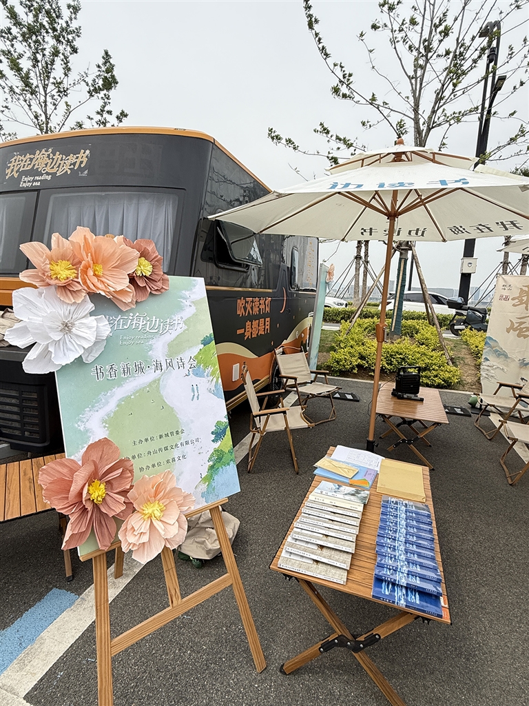 本报讯 昨天下午,由新城管委会主办的“海风诗会”在小干岛露营基地举行。作为“我在海边读书·书香新城”读书季系列活动第二期,诗会邀请了20余名诗歌爱好者,通过笔名签到、诗歌朗诵、采风创作等形式开启一场沉浸式文化漫游。