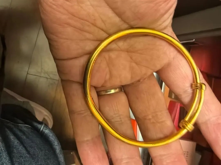 她把包裹拆了开,发现是一个金手镯。当晚,徐玲芝把镯子送到了附近的小店称重,有44.67克,毛估估价值4万多。