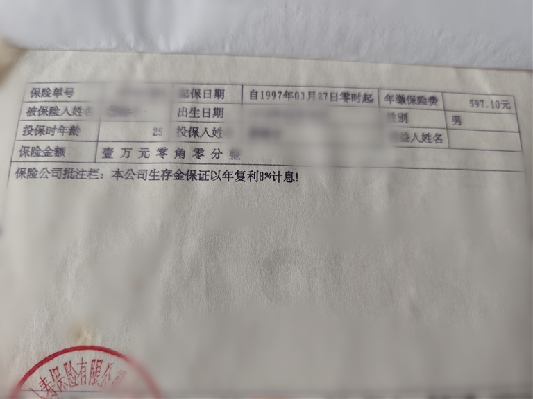 有市民翻出了“压箱底”的保险单,回忆说:“在我还小的时候,父母为我买了一份人寿保险。现在,大人不在了,我每年还能领到一笔保险金,相当于父母一直在照应我。”