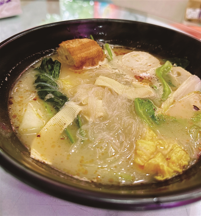 到了中午的用餐时间,店堂里总是坐满了人。有人喜欢连汤带水的麻辣烫,有人喜欢干锅上桌炒得香喷喷的麻辣香锅,真是价廉物美。天气热起来,还会有凉皮、手工冰粉和烧仙草,到店里坐上一坐,多样化选择也吸引了不少食客。