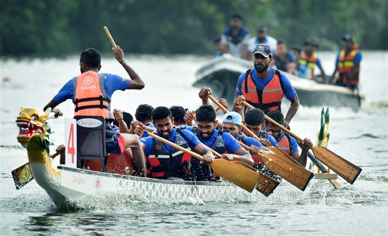 5月31日,在斯里兰卡科特,人们参加2025年端午节中斯友谊杯龙舟赛。