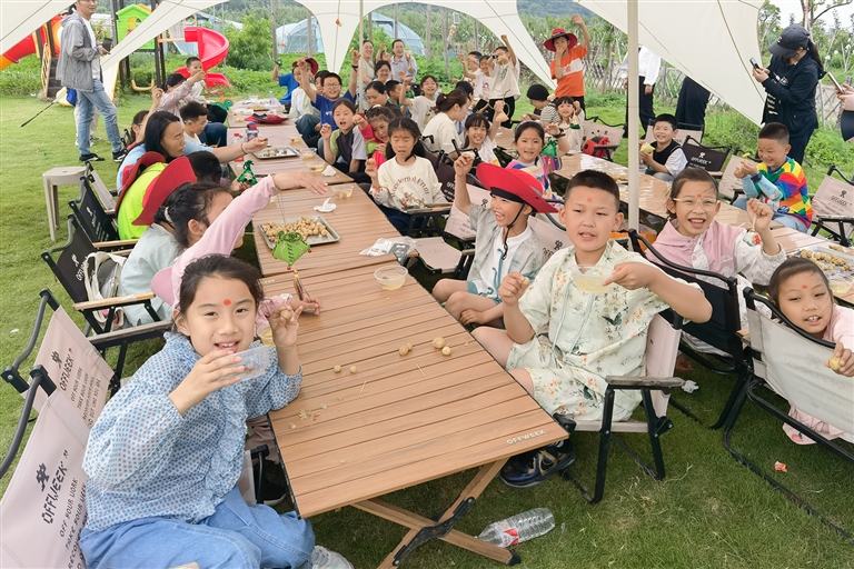岱山县岱西镇举行“香囊系端午 芒种乐收‘薯’”主题文旅活动,让孩子们同时体验芒种农耕文化与端午传统民俗 图/邱双燕