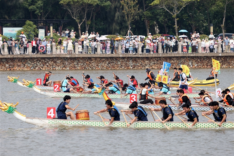 端午节前后,包粽子、做香囊、龙舟竞渡……岛城各地举行丰富多彩的民俗活动,人们在浓浓的传统文化氛围中共度佳节。