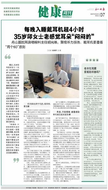 据5月29日《舟山晚报》报道,35岁的邱女士因每晚戴耳机入睡超4小时,出现耳闷、耳鸣等症状,检测显示其高频听力下降。医生指出,使用耳机需遵循“两个60”原则(音量≤60%、时长≤60分钟):长期高音量、长时间使用耳机易导致内耳毛细胞不可逆损伤,而入耳式耳机还可能引发耳道感染。报道同时提醒,熬夜、情绪压力等可能诱发突发性聋,老年性耳聋需科学干预。