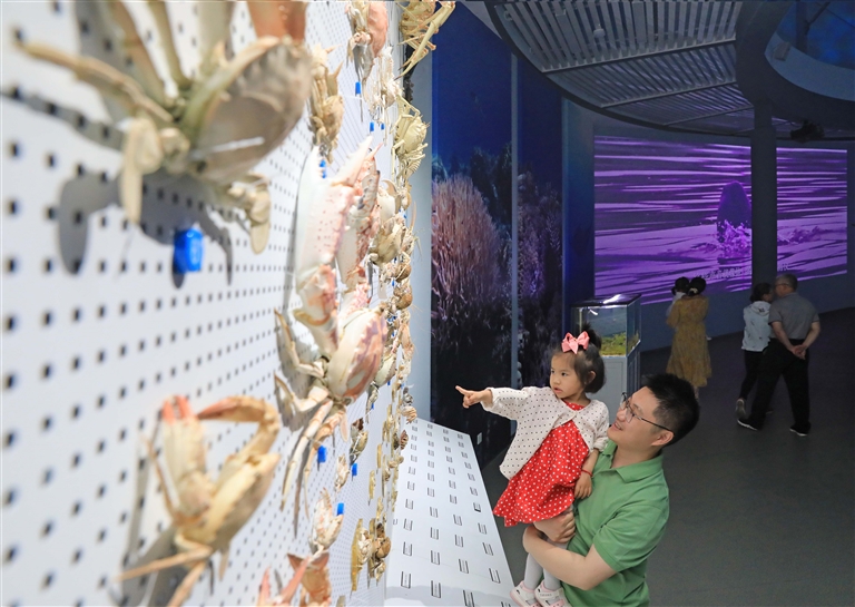 6月8日,浙江海洋大学海洋生物博物馆正式开馆,吸引众多市民游客及校内学生参观。据了解,该馆室内面积为1500平方米,融合海底中央沙盘区、船模厅、鱼类厅、无脊椎动物厅、海洋保护动物厅等五大主题展区,展品标本数量2万余件,种类2000余种。