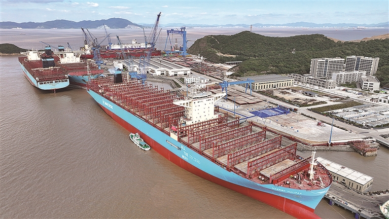 扬尘治理,是修船企业的难题之一,如今,走进普陀万邦船舶重工(舟山)有限公司,已无传统机电车间杂乱景象。该企业实现坞修船舶超高压水真空射流除锈全覆盖,修船效率提升超30%,矿砂粉尘年度减排10万吨。这正是普陀区推进船舶修造业绿色转型的缩影。