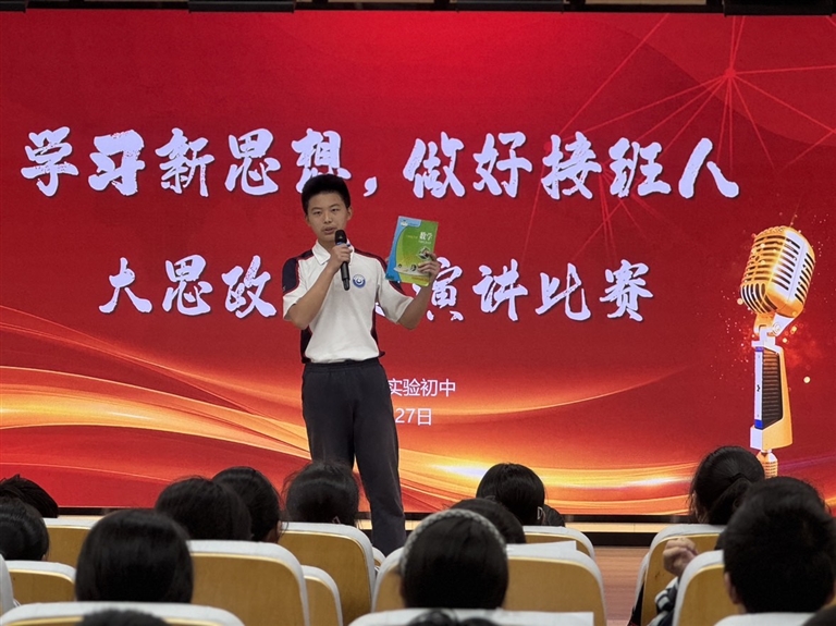 本报讯 南海初中八年级大思政主题演讲比赛于近日结束。比赛期间,学子们以“我想成为这样的人”为主题,结合自身的学习和生活经历,用青春之声传递理想信念,展现了新时代少年积极向上的精神风貌。