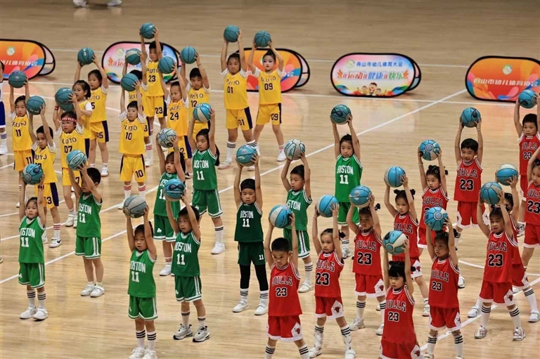 近日,由舟山市文化和广电旅游体育局、舟山市体育总会主办,舟山市幼儿体育协会承办的2025年舟山市第三届幼儿体育大会篮球表演大赛在市体育馆举行。本次比赛共有450余名萌娃参与。
