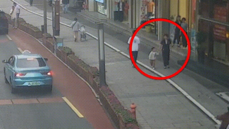 看着小男孩身边电动车穿梭,小姐姐拉住小男孩的手,一边说“旁边有车危险,到阿姨这边来”,一边将他拉到身边。