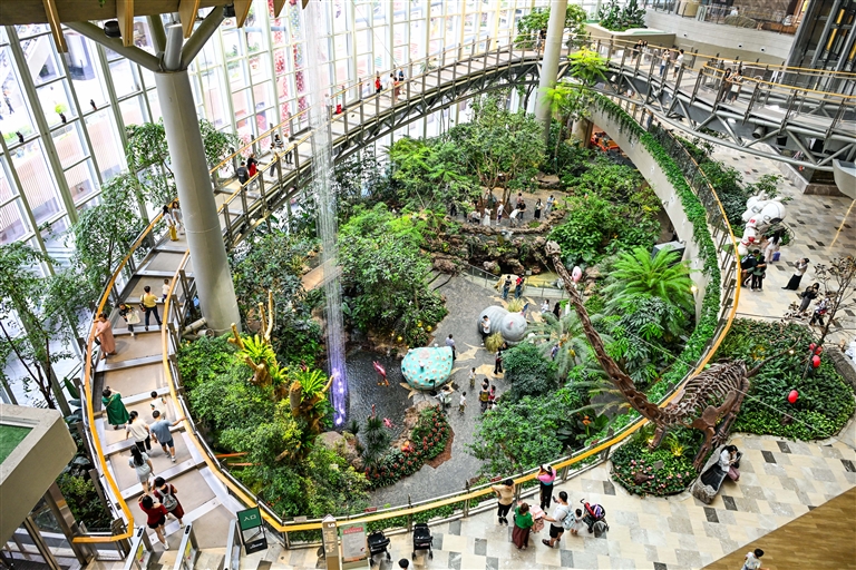 6月7日,消费者在重庆市两江新区光环购物公园游览、休闲。