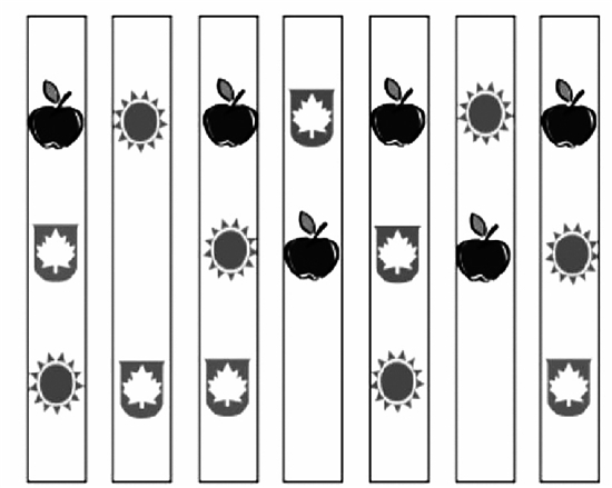 最少需要上下翻转几列,才能使上图中每一行所包含的符号种类和数量完全相同?