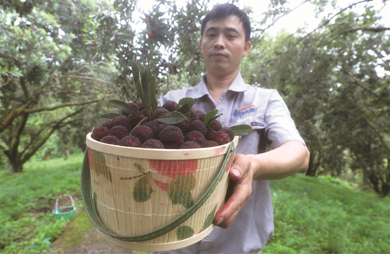 6月15日,定海区白泉镇和平村起马湾种植的百余亩晚稻杨梅迎来采摘。采摘的杨梅市场价能卖到每公斤80元—100元。今年是杨梅大年,售价低于往年。
