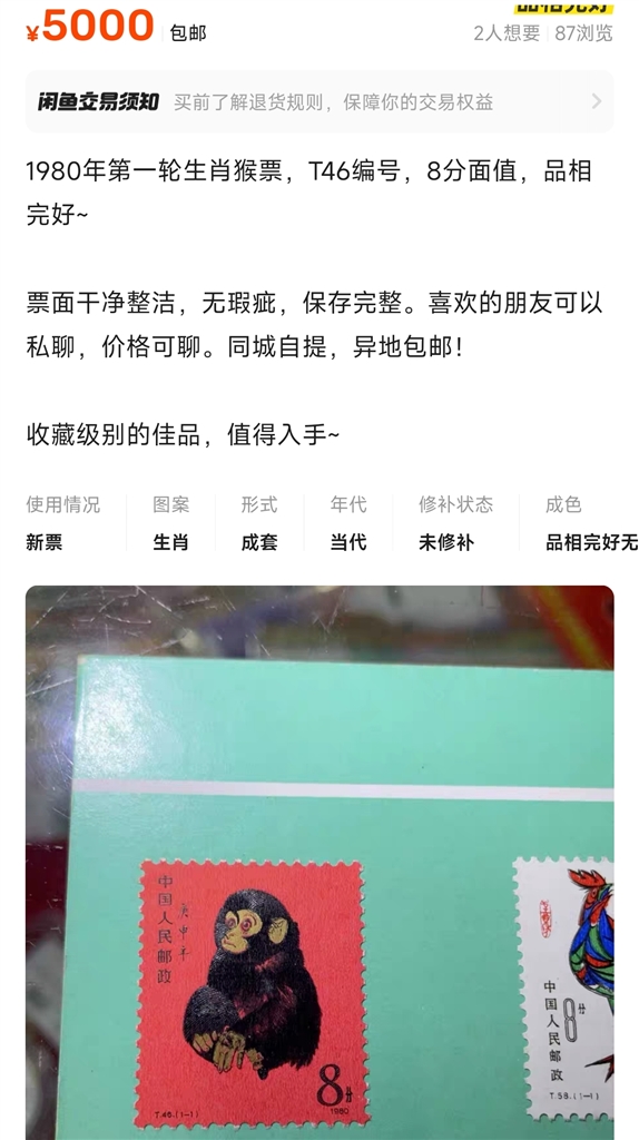 在如今的二手交易平台,“80年猴票”报价普遍在五千元以内。但由于网络交易真假难辨,下手的不多。