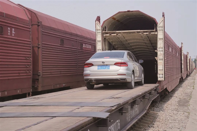 近日,在中铁特货物流股份有限公司武汉分公司汉阳工业站作业点,766台商品车和35台家用车从这里“坐火车”出发,前往云南、广西、北京、新疆、四川等地。