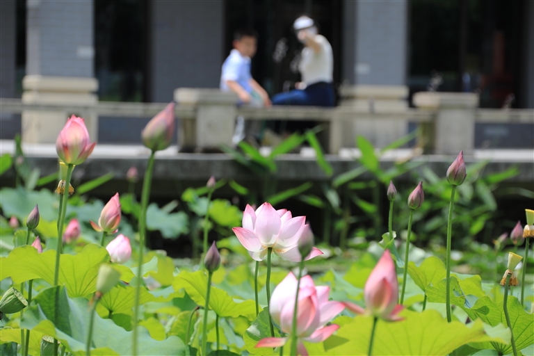 近日,在定海公园荷花池内,夏日荷花竞相绽放 记者 陈永建 摄