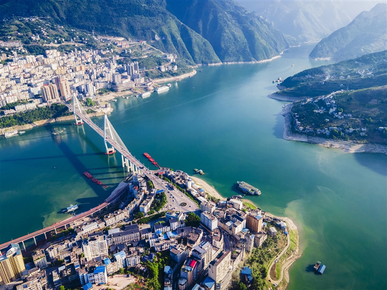 “朝辞白帝彩云间,千里江陵一日还。两岸猿声啼不住,轻舟已过万重山。”描写的是位于重庆湖北两界的长江三峡。