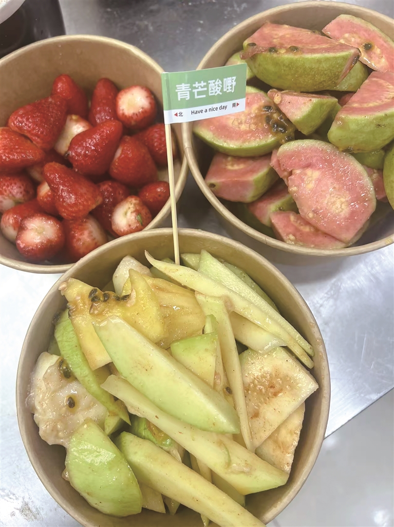配方都是公开的,酸嘢的关键主要还是水果难进。店里的芭乐、莲雾、青芒等水果,她都是从广西直发过来,不光是老家的便宜,且吃起来还有树上的鲜度,网上买的根本达不到这样的要求。