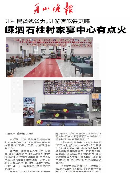 近日,嵊泗县菜园镇石柱村家宴中心火了(《舟山晚报》6月19日报道)。石柱村家宴中心通过“集体资产租赁+市场化运营”的创新模式,释放出服务村民、便利游客的多重效益,村集体经济也因此有了每年6万元租金收入。