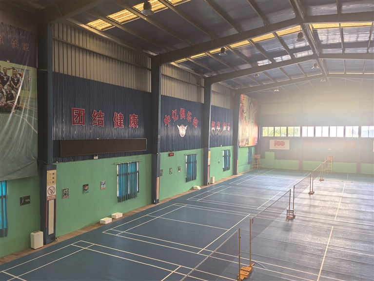 走进场馆,细节之处尽显用心:墙壁上,“党建引领、共建共享”、“义行天下,回报社会”、“爱国、敬业、诚信、守法”等大幅标语传递着正能量;“黑底鞋禁入白线”等提示牌规范着行为;场地外侧的小凳子、衣物箱方便休息;更配备了设施齐全的浴室……