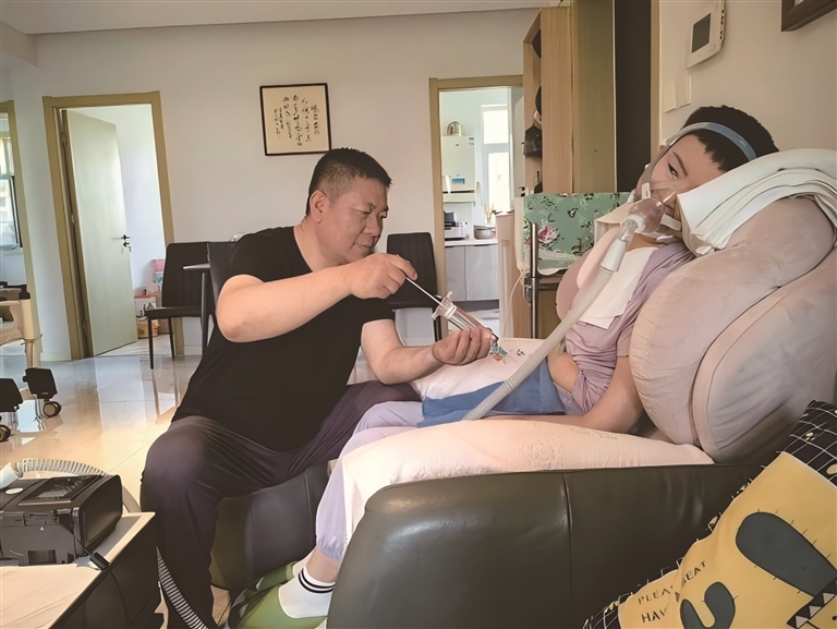随着病情发展,李芳的吞咽功能完全丧失。他们不得不前往西安大兴医院进行胃造瘘手术,并花费近10万元购置制氧机、吸痰机等生命维持设备。为了支付高昂的进口药费和医疗器械开支,这个双职工家庭变卖了唯一住房。如今家中摆满了各种医疗设备,呼吸机的嗡鸣声成为永不停歇的旋律。保森始终如一地守护在妻子身边,不仅悉心照料她的日常起居,更坚持陪她做康复训练,成为她最坚实的依靠。