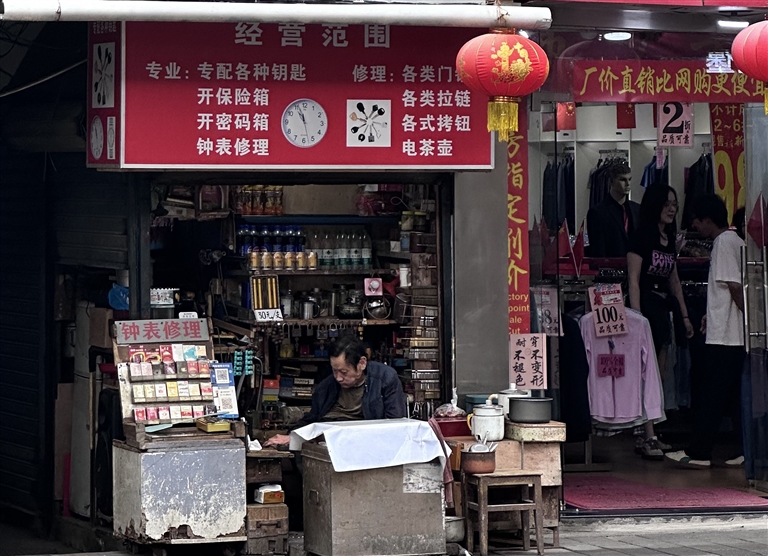 以上三位不同身份的从业者勾勒了一幅小修小补坚守者的画像,他们或在他人店铺“寄身”,或一店多能,手艺精湛,薄利收费,成为城市便利生活的“孤独守艺人”。