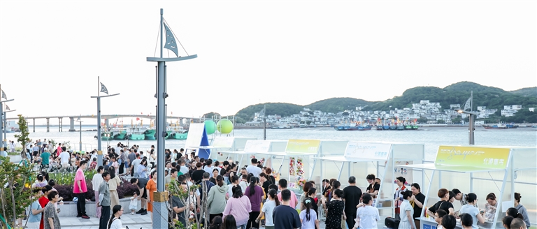本报讯 6月28日傍晚,海风轻拂,乐声悠扬。嵊泗县望海公园内,一个融合艺术气息与人间烟火的全新地标——北港集市正式点亮。新鲜海产、优质农副产品和地道小吃琳琅满目,居民自发组织的文娱活动更是为夜色增添了活力。