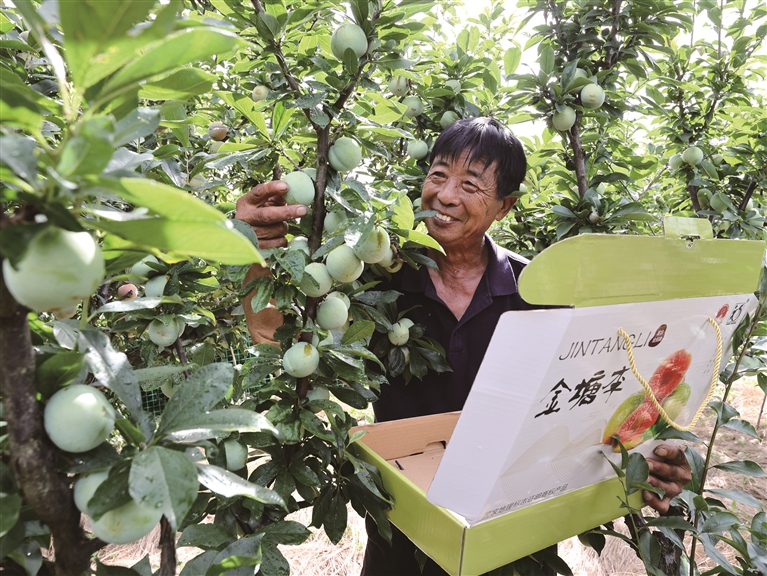 “今年产量总体稳定,口感鲜甜。”眼下,在金塘大丰小卫平岙10号的金塘丰瑞家庭农场,农场负责人瞿志芳正和妻子采摘已成熟的李子,他家的金塘李种植面积达130亩。
