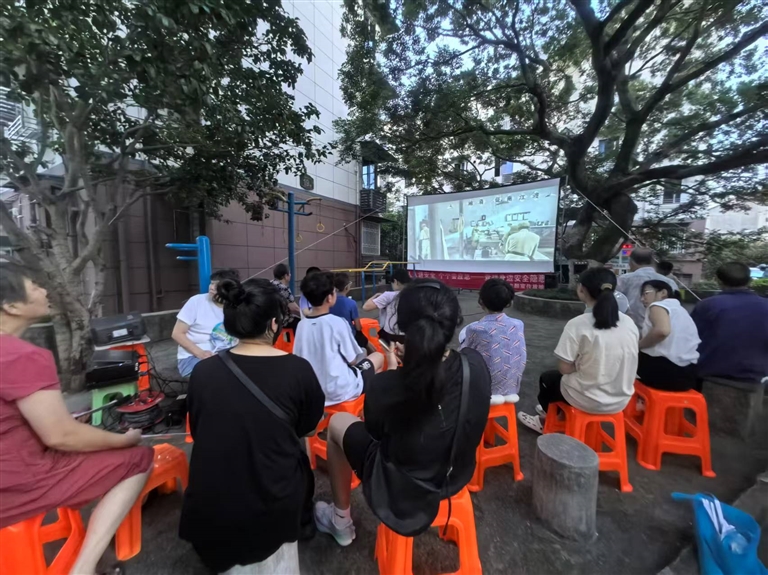 7月2日晚,定海区昌国街道北园社区开展红色电影播放活动,以丰富居民业余文化生活,增进邻里间的情感交流。