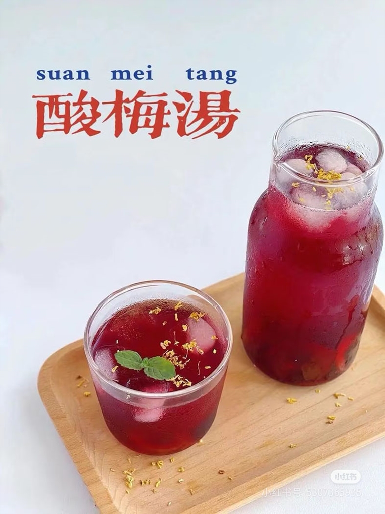 酸梅汤是经典的解暑甜水之一。取乌梅、山楂、洛神花、甘草等食材,洗净后放入锅中,加入足量清水,大火煮开后转小火慢炖40分钟左右。待汤汁变得浓郁深红,散发出诱人的酸甜香气再加入适量冰糖,搅拌至完全融化。放凉后倒入密封容器,便可放入冰箱冷藏。饮用时,舀上一杯,酸酸甜甜的滋味在舌尖散开,让人神清气爽。