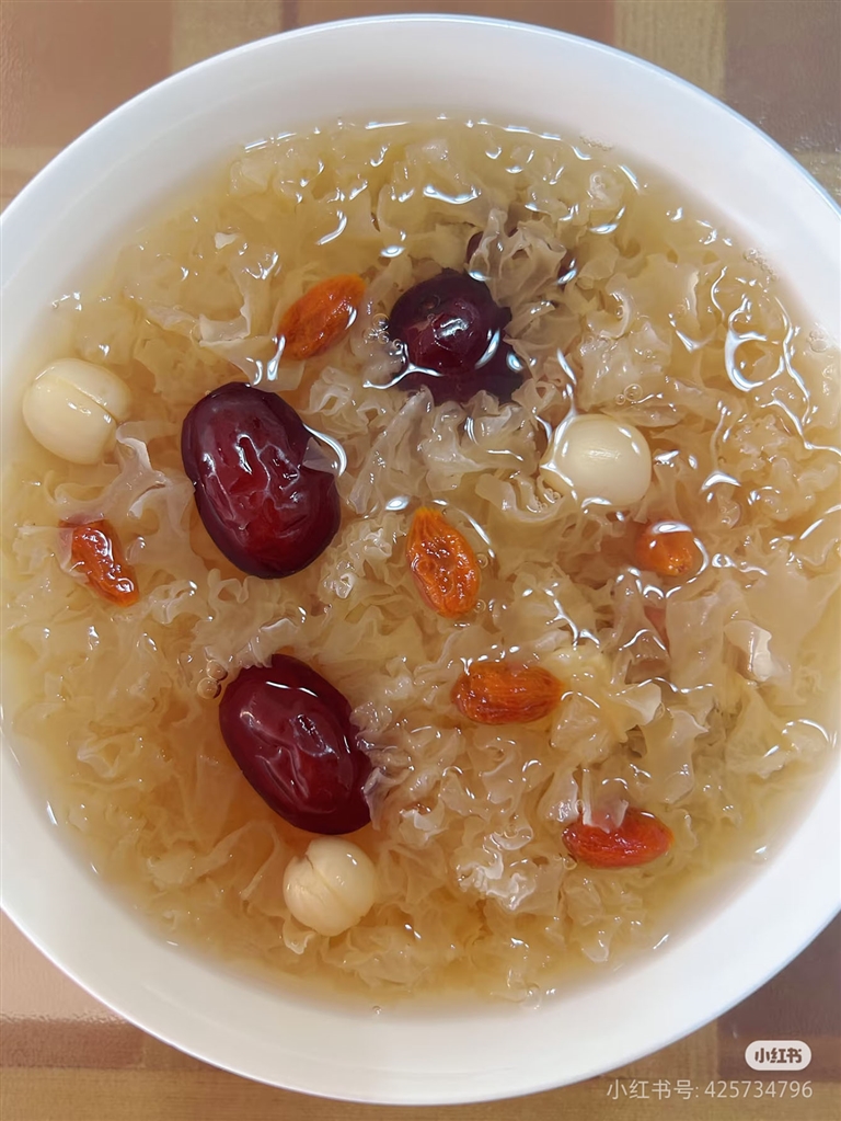 若想喝得滋补些,还有清甜可口的银耳莲子羹。将银耳泡发撕成小朵,与泡软的莲子及冰糖一起放入锅中,加入足量清水,小火慢炖至银耳出胶,汤汁浓稠。放凉后食用,银耳软糯,莲子粉糯,甜甜的汤汁滋润又解暑,既可以当作甜水饮用,又能作为餐桌上的美味甜品。