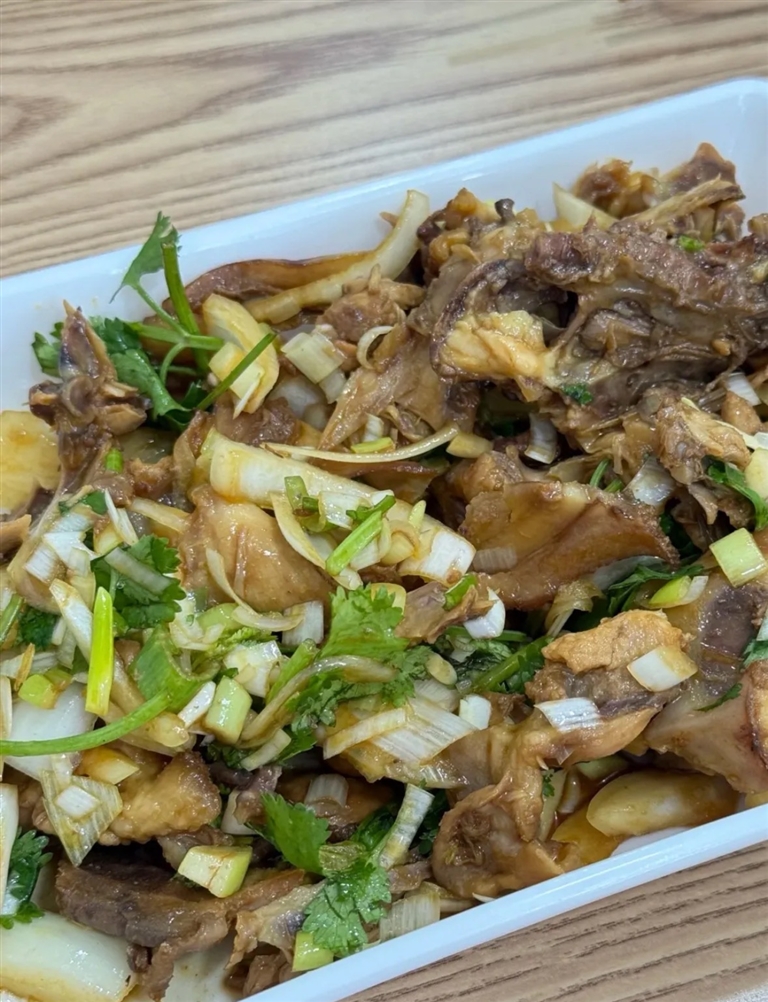 除了招牌冷面,店内的东北风味鸡架也广受欢迎。提供两种风味,炸鸡架外酥里嫩,金黄诱人,连骨头都炸得酥香,撒上辣椒粉或孜然粉,嚼起来满口生香,微甜微辣。拌鸡架则是酸甜口打底,带着一丝若有似无的麻意,爽口开胃,越吃越上头。