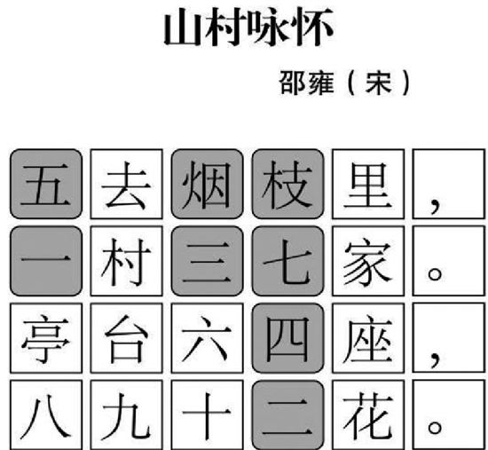 这首古诗词中深色部分的文字出现了差错,你能否将它拼到正确的位置?
