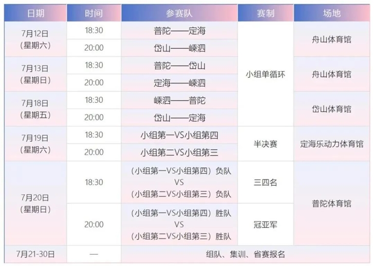 决出的县区冠军球队将直通“浙BA”,其余3支球队组成1支舟山市队参赛。
