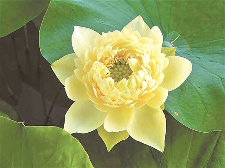 这一年收获后,陆炜桦把得到的种子又播种下去。2022年荷花花季时,他爬上天台,一眼就看到成长得更为茁壮挺拔的“林亭春霭”,金灿灿的非常耀眼。次年,该品种在莲花山试种、观察,先在盆栽种,再换到小池子,直到今年在大池子中开满。这株新荷的盛放,前后花费陆炜桦近五年的时间。